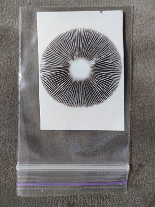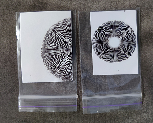 - Кішігірім іздер (диаметрі 3 см дейін): бір қағаз бөлігінде бірнеше іздерді орналастыру нұсқасы кездеседі. Сондай-ақ мұндай өлшемдер кішкентай жеміс денелері бар саңырауқұлақтар үшін тән (мысалы, *Psilocybe tampanensis*).